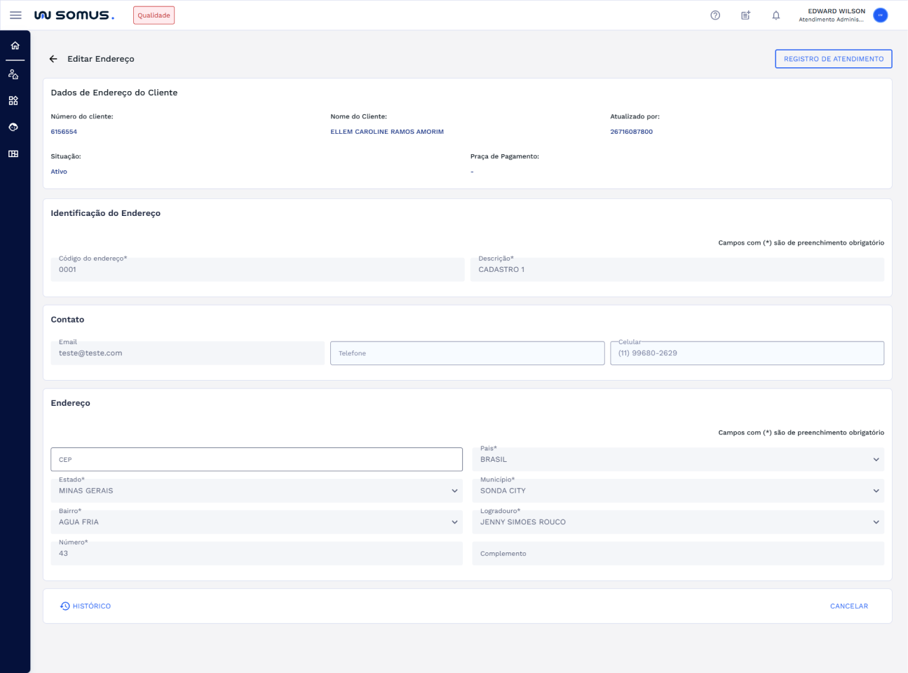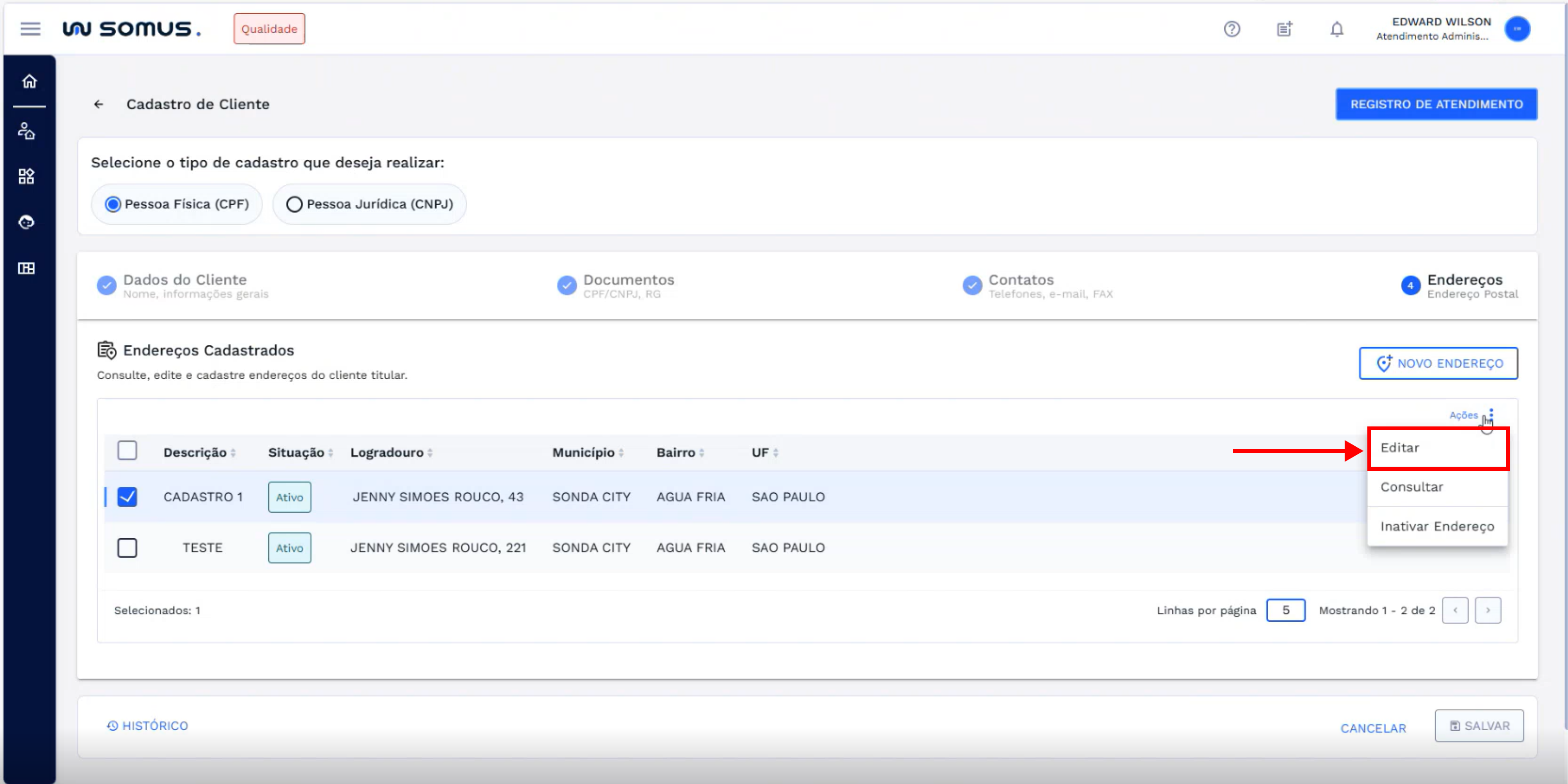 # EDITAR ENDEREÇO DO CLIENTE