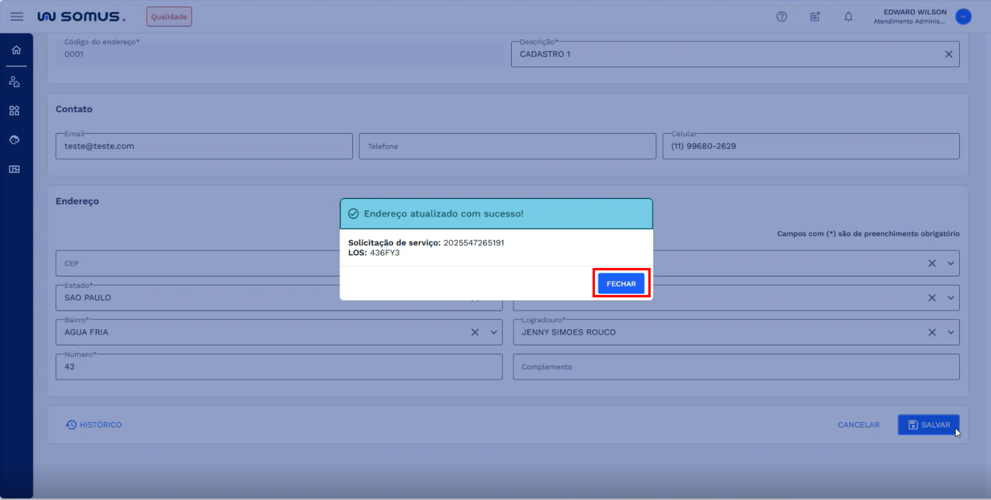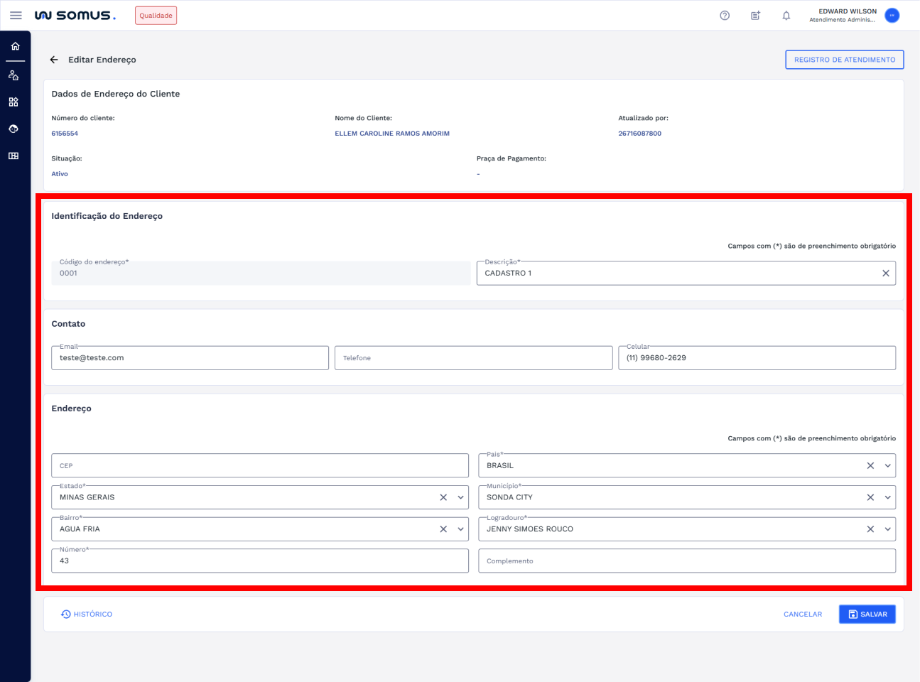 # ALTERAÇÃO DOS DADOS DO ENDEREÇO DO CLIENTE