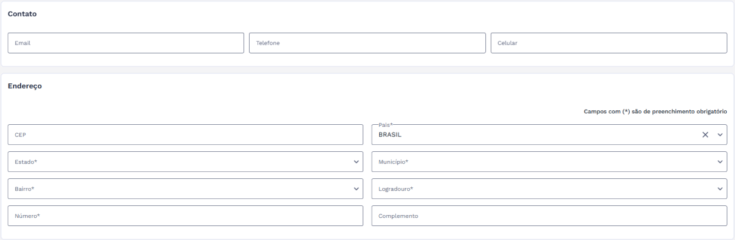 Campos Obrigatórios: Campos obrigatórios são indicados com um asterisco (*). O preenchimento dessas informações é indispensável para salvar o registro.
