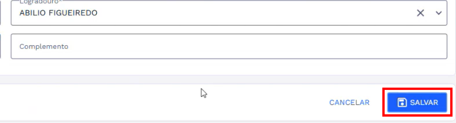 Após preencher todos os campos obrigatórios o sistema habilitará o botão “SALVAR”.