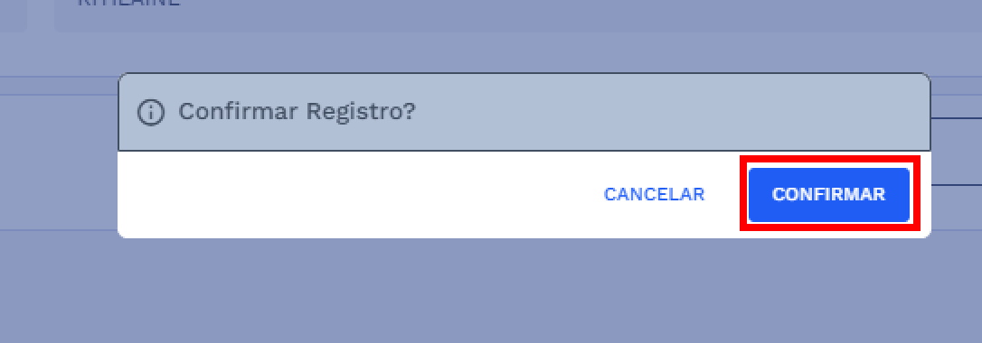 Ao clicar em SALVAR o sistema apresentará uma caixa de diálogo solicitando a confirmação do registro. Para prosseguir, clique em CONFIRMAR e caso deseje retornar clique em CANCELAR. Confira na imagem abaixo: