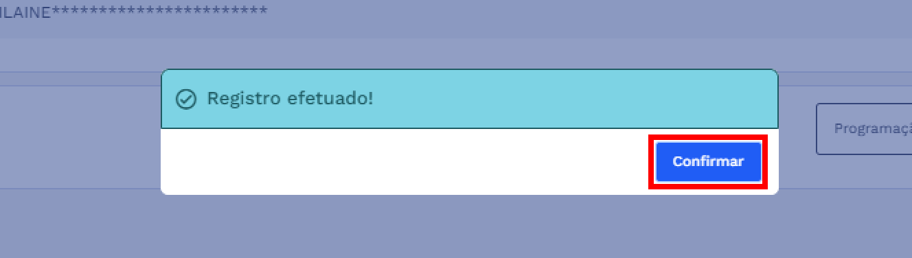 Ao confirmar, o sistema realizará todas as validações necessárias e, estando tudo de acordo, será exibida uma caixa de diálogo indicando que o registro foi efetuado, conforme o exemplo abaixo: