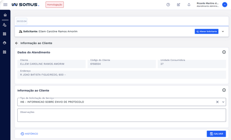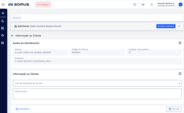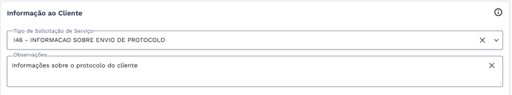 | Atendimento | Registrar SS de Informações ao Cliente |