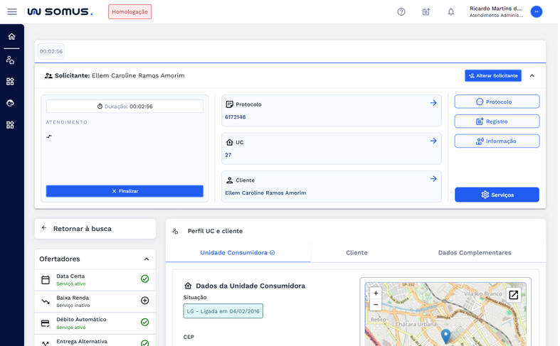Resumo dos dados do cliente que está recebendo o atendimento.